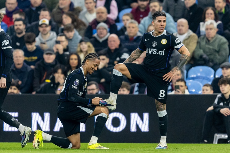 上半场补时阶段,恩佐直塞助攻若昂·佩德罗破门。在庆祝时,若昂·佩德罗给恩佐擦鞋庆祝,恩佐抱起佩德罗。